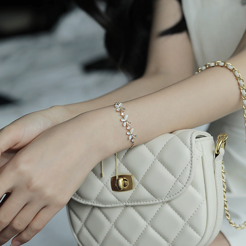 Real Gold Electroplated Opal Butterfly Adjustable Bracelet