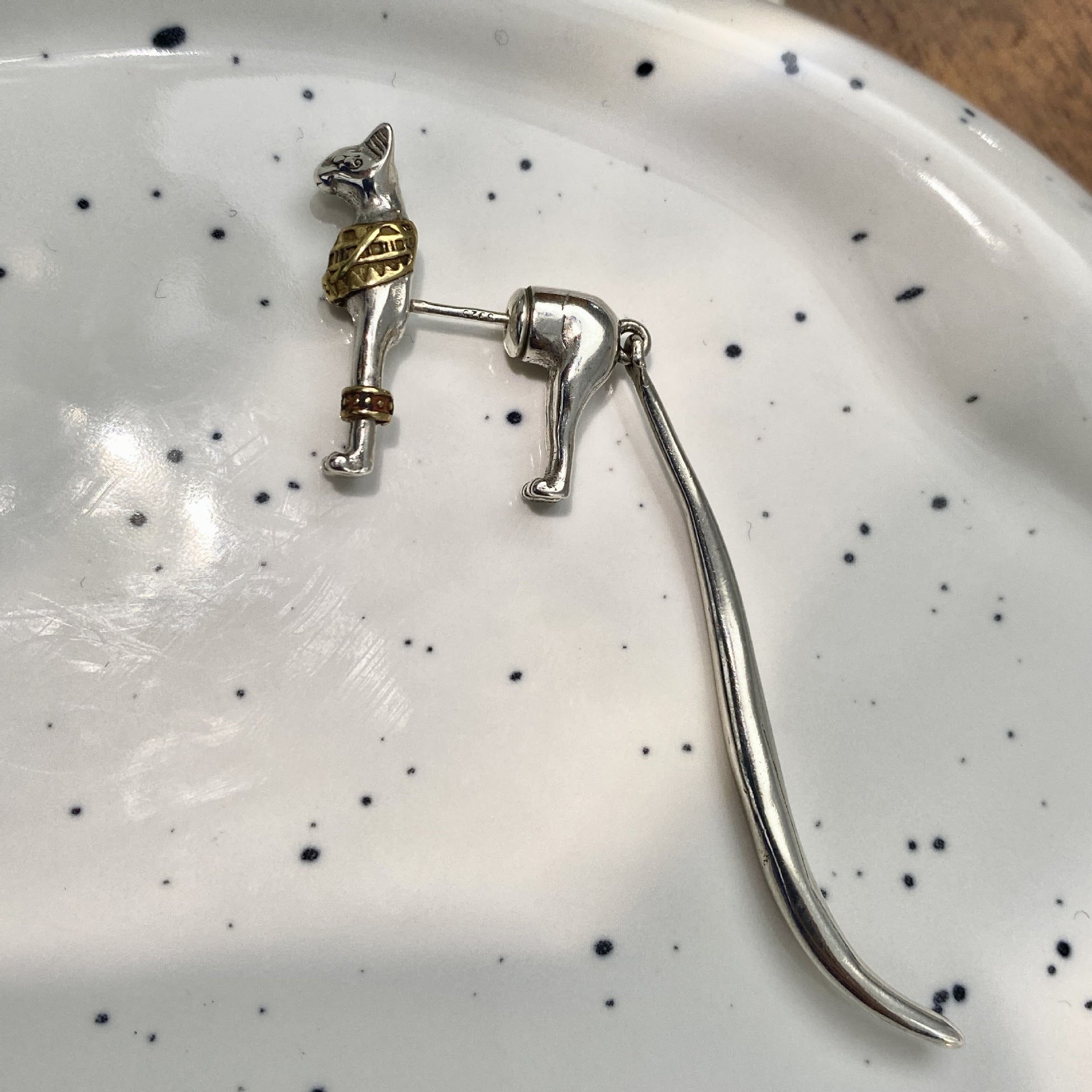 Single Gold And Silver Two-tone Pharaoh Cat Earrings